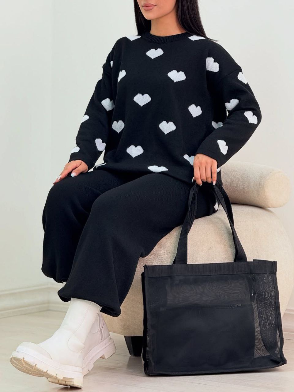 جزئیات : ⭐ست بلوز شلوار قلبی 🟣پارچه بافت نرم و درجه یک 🟣فری سایز 38 تا۴۶