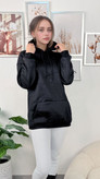 جنس : هودی تو کرکی دو لایه گرم پالتویی شاین دار تک رنگ مشکی
